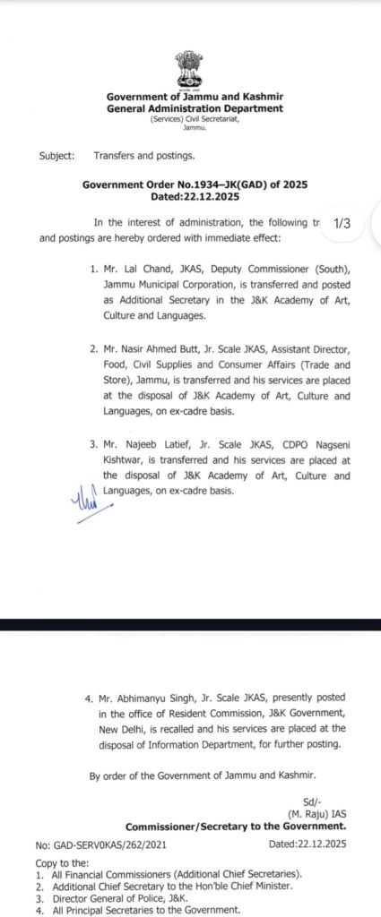 Government order Transfer and postings