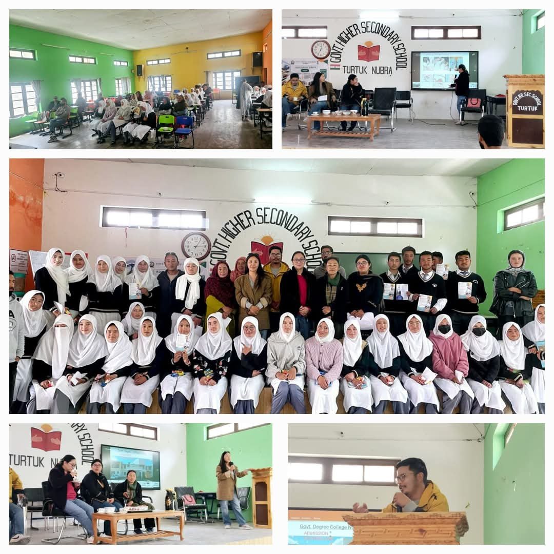 Nubra, DD: Under the guidance of Principal Dr Tsewang Motup, the college faculty and students conducted a mega awareness, enrolment drive in the villages of Bogdang, Turtuk and Tyakshi on 26th of April 2025. They interacted with students from Higher Secondary Schools of Bogdang, Turtuk and Tyakshi. The teachers and students from GDC Nobra raised awareness about the upcoming Bridge Course to be held at the college campus from 28th April till 10th May 2025. They also had a counselling session with 12th pass out students and the current 12th class batches where they informed them about the various course options under the NEP 2020 and to make a conscious choice during the admission process. The Bogdang team comprised of Assistant Professors: Mr. Mohd. Mussa (Team Leader), Ms. Stanzin Itga, Ms. Rinchen Angmo and students Shah Jahan, Zangskit Dolma. Turtuk team comprised of Assistant Professors: Ms. Sonam Angmo (Team Leader), Ms. Stanzin Padma, Dr Padma Lahmo, Mr. Mohd. Javed and students Sanju Kumari, Samina Anjum. Team Tyakshi included Assistant Professors: Ms. Tsewang Lahmo(Team Leader), Dr Konchok Dorjay , Ms. Spalzes Angmo, Dr Masroor Ahmed and student Naziya Anjum. School Principals Smt. Tsewang Dolma(GHHS, Turtuk), Smt. Mepham Tsomo(GHHS, Bogdang), school teachers, parents, village community leaders and local stakeholders also supported and contributed to make the awareness drive a success.DD