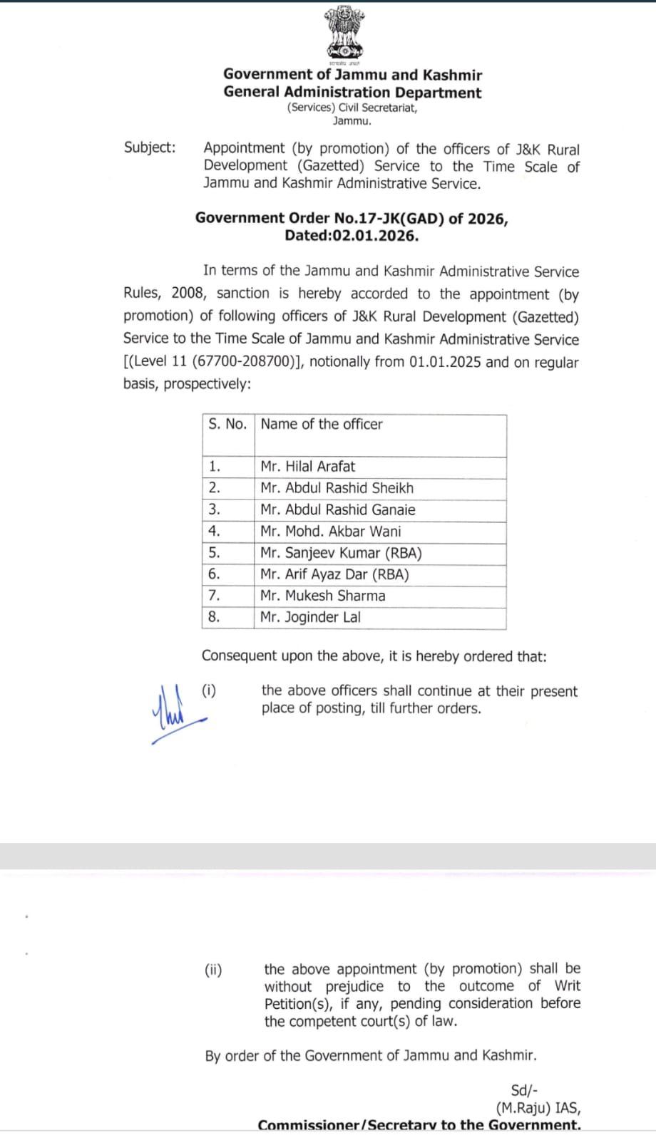 LATEST NEWS Missed words and lost voices intermingle throughout stratified histories of Rampur Bahu Fort Residents Seek Extension of Smart City E-Bus Services Housing Security and Tax Fairness: Parliament Must Deliver Beyond Debate Indian Army’s Medical Patrol Wins Trust of Local Population in Jammu Region Advanced Management Development Programme under ESDP–DCMSME Inaugurated in IIM Jammu JammuKashmir Less than 1 min.Read Govt of Jammu and Kashmir, General administration department By Diplomat Digital January 2, 2026 FacebookTwitterPinterestWhatsApp Hot this week Features Missed words and lost voices intermingle throughout stratified histories of Rampur February 10, 2026 0 Other stories come like the whispers of the past,... Jammu Bahu Fort Residents Seek Extension of Smart City E-Bus Services February 10, 2026 0 Jammu: Residents of the historic Bahu Fort area have... Edit/Opinion Housing Security and Tax Fairness: Parliament Must Deliver Beyond Debate February 10, 2026 0 The issues of housing insecurity among the urban poor... Jammu Indian Army’s Medical Patrol Wins Trust of Local Population in Jammu Region February 10, 2026 0 Akhnoor: The Indian Army has continued its medical patrols... Jammu Advanced Management Development Programme under ESDP–DCMSME Inaugurated in IIM Jammu February 9, 2026 0 Jammu, J&K (India): The Indian Institute of Management (IIM)... Topics Features Missed words and lost voices intermingle throughout stratified histories of Rampur 0 Other stories come like the whispers of the past,... Jammu Bahu Fort Residents Seek Extension of Smart City E-Bus Services 0 Jammu: Residents of the historic Bahu Fort area have... Edit/Opinion Housing Security and Tax Fairness: Parliament Must Deliver Beyond Debate 0 The issues of housing insecurity among the urban poor... Jammu Indian Army’s Medical Patrol Wins Trust of Local Population in Jammu Region 0 Akhnoor: The Indian Army has continued its medical patrols... Jammu Advanced Management Development Programme under ESDP–DCMSME Inaugurated in IIM Jammu 0 Jammu, J&K (India): The Indian Institute of Management (IIM)... India India–Greece Deepen Strategic Partnership During High-Level Defence Talks in New Delhi 0 New Delhi: Indian Defence Minister Rajnath Singh today held... Edit/Opinion The Nation’s Water, the Nation’s Light and Prosperity 0 It is a welcome and far-reaching step that serious... Features Exploration of colour and memory 0 The Yellow Metaphor, a poetry collection by Jiban Narah... Related Articles Bahu Fort Residents Seek Extension of Smart City E-Bus Services Jammu February 10, 2026 Indian Army’s Medical Patrol Wins Trust of Local Population in Jammu Region Jammu February 10, 2026 Advanced Management Development Programme under ESDP–DCMSME Inaugurated in IIM Jammu Jammu February 9, 2026 Anjumans holds Protest in Jammu Against Shia Genocide in Pakistan Jammu February 8, 2026 The Indelible Hills: Why Pir Panjal and Chenab Valley Cannot Be Erased Article February 6, 2026 Previous articleTransfers and PostingsNext articlePolice and Food Safety Department take action against Food Safety Violations at Bus Stand Jammu