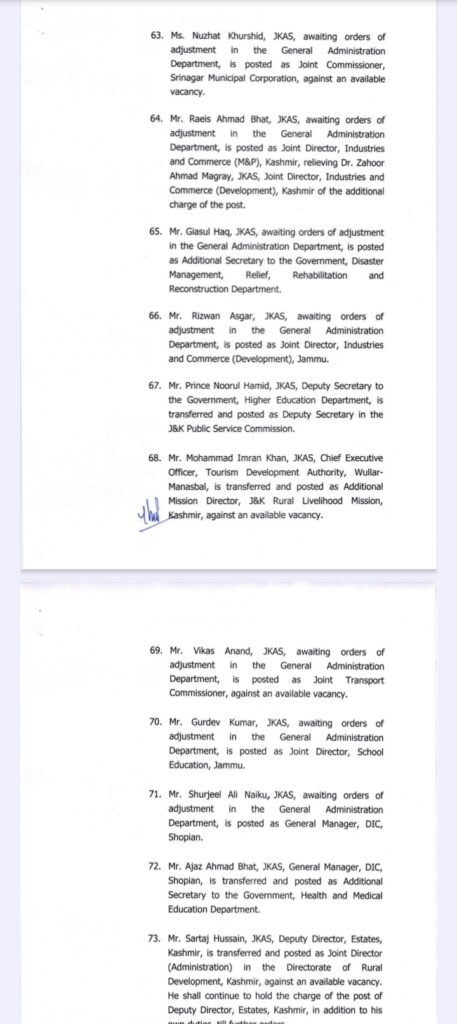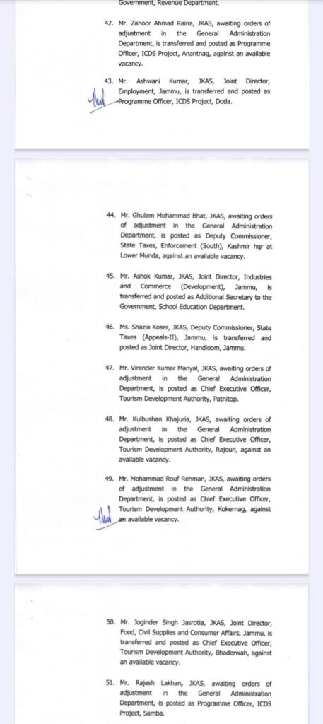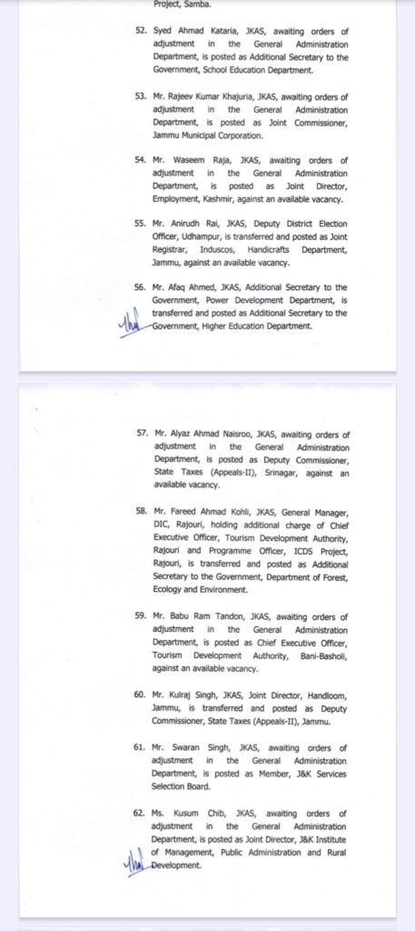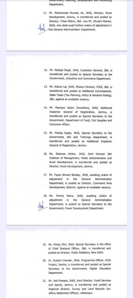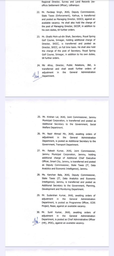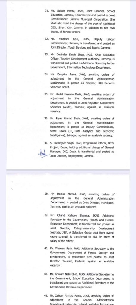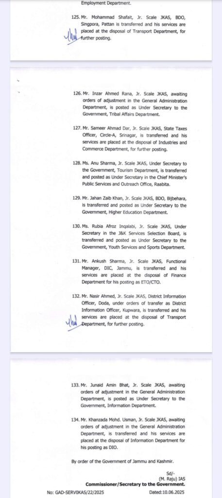 LATEST NEWS Workshop on Ladakh Sustainable Industrial Policy 2022-27 in Leh “AIIMS Is a Badge of Honour”: Prof. Daya Nand Sharma addressed Faculty to Lead with Excellence, Integrity and Compassion Ice Hockey: Trials for Khelo India Winter Games Begin in Leh BADC Seeks Time Bound Panchayat Polls in J&K RTI Activist Urges Extension of Winter Vacations in Jammu Schools JammuKashmir Less than 1 min.Read Govt orders transfer, posting of 134 JKAS officers By Diplomat Digital June 10, 2025 FacebookTwitterPinterestWhatsApp Hot this week Ladakh Workshop on Ladakh Sustainable Industrial Policy 2022-27 in Leh January 14, 2026 0 Diplomat CorrespondentLeh: District Industries Centre Leh organized an Awareness... Jammu “AIIMS Is a Badge of Honour”: Prof. Daya Nand Sharma addressed Faculty to Lead with Excellence, Integrity and Compassion January 14, 2026 0 Diplomat Correspondent Jammu, Prof.Daya Nand Sharma, ED & CEO,... Ladakh Ice Hockey: Trials for Khelo India Winter Games Begin in Leh January 14, 2026 0 Diplomat CorrespondentLeh: The UT Ladakh team selection trials for... Jammu BADC Seeks Time Bound Panchayat Polls in J&K January 14, 2026 0 Diplomat CorrespondentJammu: The Jammu and Kashmir Border Area Development... Jammu RTI Activist Urges Extension of Winter Vacations in Jammu Schools January 14, 2026 0 Diplomat Correspondent Jammu: With severe cold conditions continuing across... Topics Ladakh Workshop on Ladakh Sustainable Industrial Policy 2022-27 in Leh 0 Diplomat CorrespondentLeh: District Industries Centre Leh organized an Awareness... Jammu “AIIMS Is a Badge of Honour”: Prof. Daya Nand Sharma addressed Faculty to Lead with Excellence, Integrity and Compassion 0 Diplomat Correspondent Jammu, Prof.Daya Nand Sharma, ED & CEO,... Ladakh Ice Hockey: Trials for Khelo India Winter Games Begin in Leh 0 Diplomat CorrespondentLeh: The UT Ladakh team selection trials for... Jammu BADC Seeks Time Bound Panchayat Polls in J&K 0 Diplomat CorrespondentJammu: The Jammu and Kashmir Border Area Development... Jammu RTI Activist Urges Extension of Winter Vacations in Jammu Schools 0 Diplomat Correspondent Jammu: With severe cold conditions continuing across... Pir Panjal Indian Army’s Medical Patrol in Rajouri 0 Nazim Ali ManhasRajouri: Indian Army organized a medical patrol... Iran Protests in Iran Escalate Amid Economic Crisis and Claims of Foreign Interference 0 Recent nationwide demonstrations in Iran, triggered by severe economic... International Situation Turns Tense as Donald Trump Cancels All Meetings with Iranian Officials 0 Diplomat Foreign Desk Washington: US President Donald Trump has cancelled... Related Articles “AIIMS Is a Badge of Honour”: Prof. Daya Nand Sharma addressed Faculty to Lead with Excellence, Integrity and Compassion Jammu January 14, 2026 BADC Seeks Time Bound Panchayat Polls in J&K Jammu January 14, 2026 RTI Activist Urges Extension of Winter Vacations in Jammu Schools Jammu January 14, 2026 JKEDI Registers 22 Female Candidates for Management Development Programme in Bandipora Kashmir January 13, 2026 IIT Jammu hosts workshop on Tribal Heritage Mapping Jammu January 13, 2026 Previous articleFarooq Abdullah Takes Vande Bharat to Katra, Calls It a Game-Changer for J&K TourismNext articleCabinet Sub-Committee Finalizes Reservation Report: Education Minister Sakina Masood Itoo