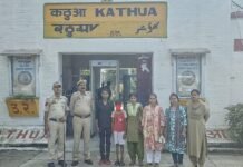 Diplomat Correspondent Kathua:DD, On 27th August 2025, during routine patrolling, the team of Police Station GRP Kathua found a child roaming at Platform No.1 of Railway Station Kathua. On questioning, the child disclosed his identity as Kanehiya, S/o Kapuri Thakur, aged 10 years, resident of Telyar, District Nalanda, Bihar, presently residing at Devla, P/S Surajpur, … Continue reading GRP JAMMU REUNITES CHILD FROM BIHAR WITH HIS PARENTS