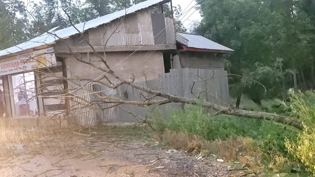 Srinagar, (DD): Strong gusty winds and heavy rainfall caused significant damage across parts of North and Central Kashmir on Friday evening, leading to disruption of daily life, damage to property, and power outages in several areas.