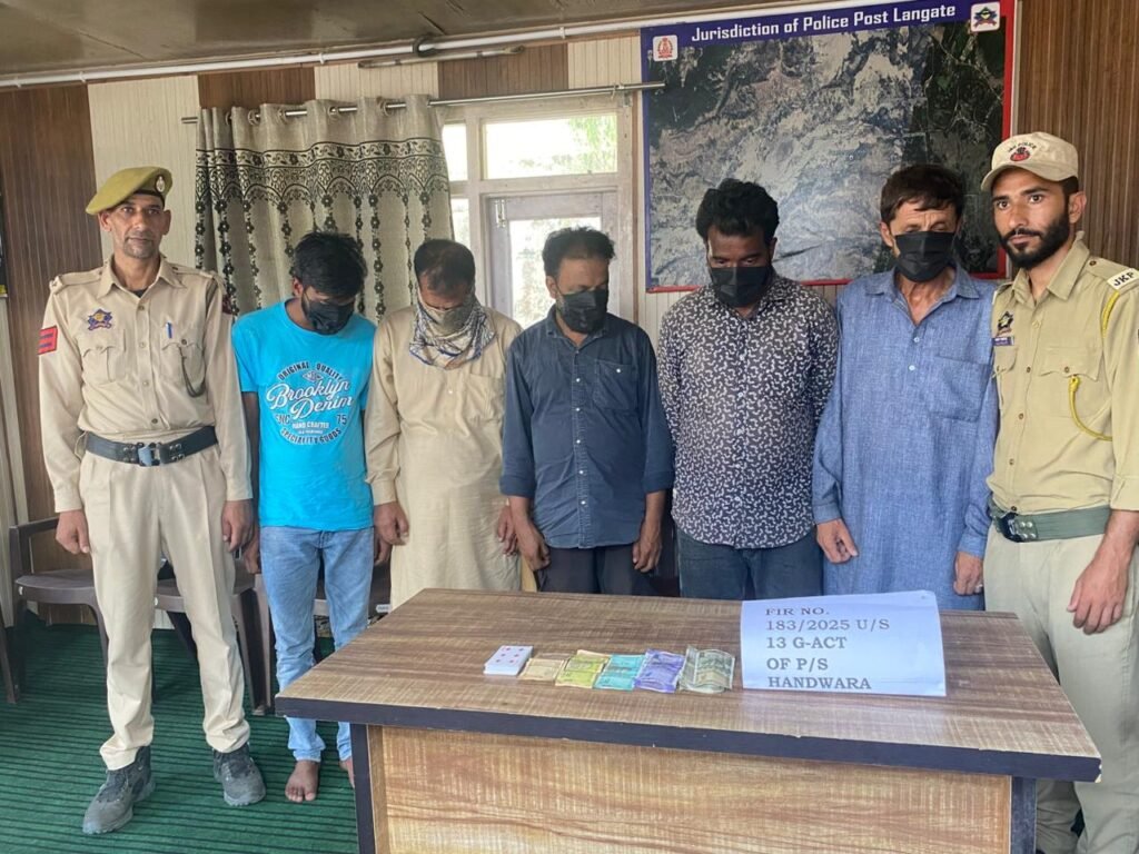 Handwara, DD, As part of its continued drive against social evils, Handwara Police conducted a successful raid in the Langate area today, leading to the arrest of five individuals involved in illegal gambling.