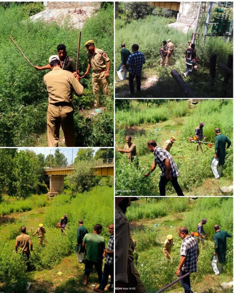 Handwara, July 28, 2025,DD:Continuing its efforts to eradicate the menace of narcotics and curb illegal cultivation of contraband substances, Handwara Police today conducted a bung (cannabis) destruction drive at Unisoo area of Handwara .During the drive, a large stretch of illegally cultivated bung was identified and destroyed on the spot.