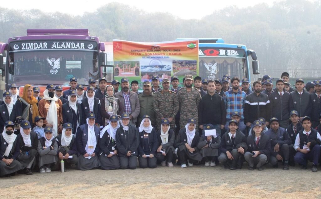 Kargil ,TDD,In a remarkable display of patriotism and unity, 90 students from Army Goodwill Schools (AGS) in Hajin, Bandipore, and Markund embarked today on a special Capacity Building Tour (CBT) to the Kargil War Memorial, organized by the Indian Army as part of Operation Sadbhavana. This two-day tour, from 6-7 November, offers these young students a unique opportunity to connect with India’s legacy of bravery and sacrifice, fostering a deeper appreciation for the courage of our soldiers.