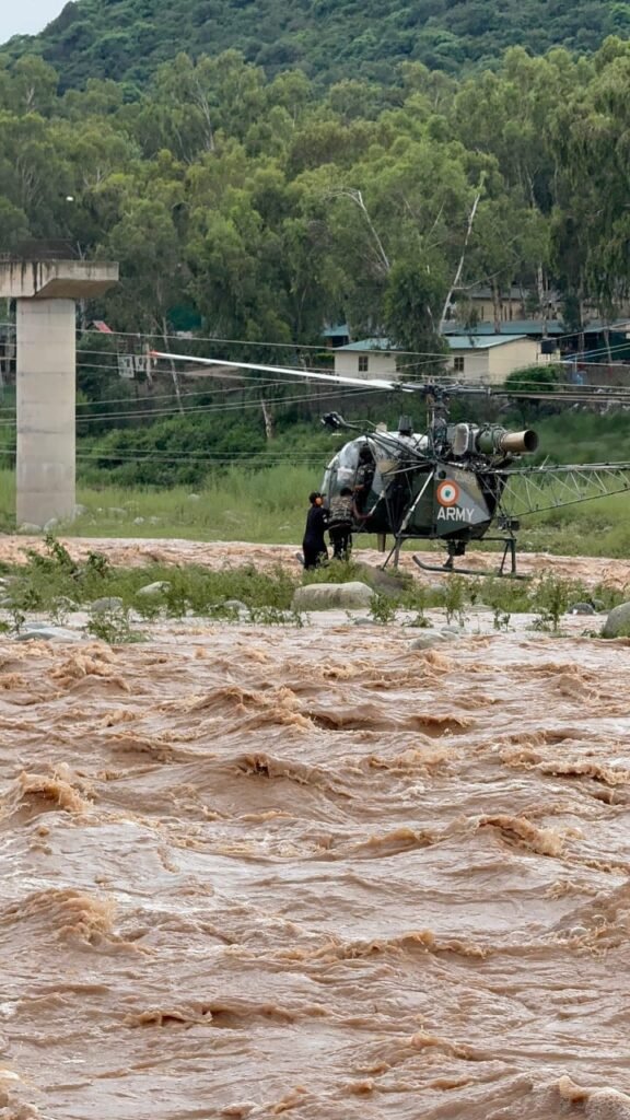 The pilots of Indian Army once again exhibited exceptional skill at negotiating wire obstacles, river in spate, no clear landing spot and still rescued the teenage boy and evacuated him safely to the bank of river.