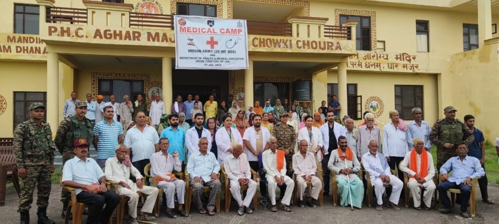Jammu :DD, In a significant demonstration of its commitment to civil-military cooperation and community welfare, the Indian Army and Department of Health and Medical Education, J&K, today successfully concluded a free medical camp at Primary Health Center, Ghar – Majhoor, in Chowki Chaura Block, Jammu.
