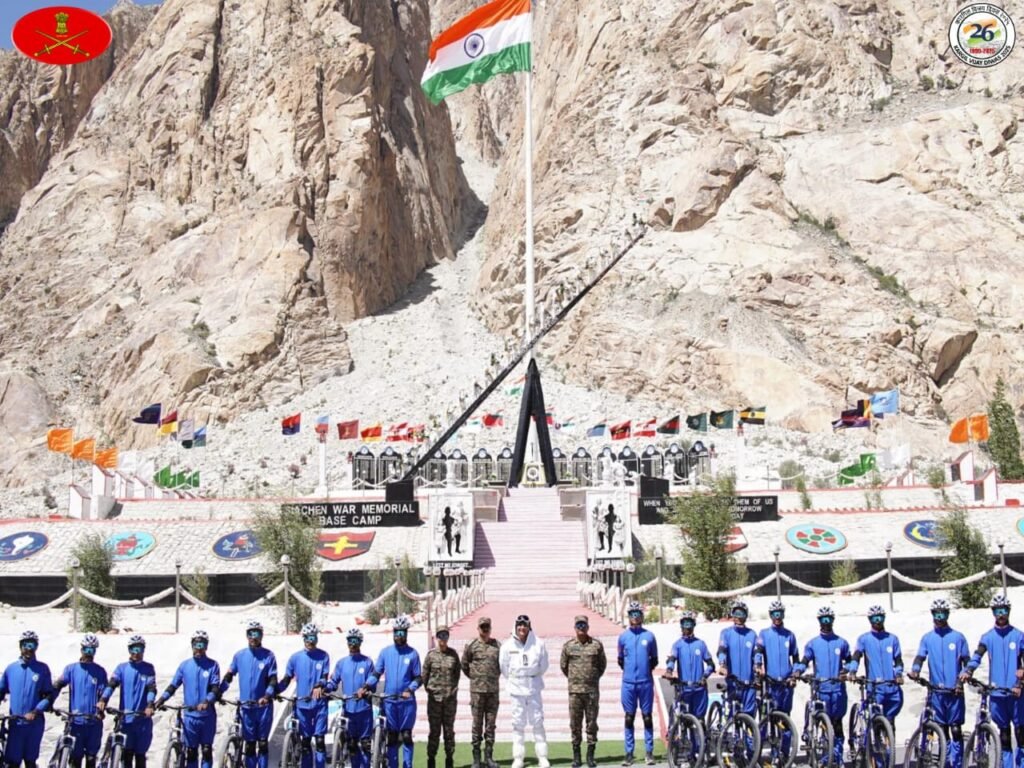 In a spirited celebrations of the upcoming 26th Kargil Vijay Diwas, the Indian Army flagged off ‘Forever in Operations Mountain Terrain Bicycle Expedition 2025’ from the Siachen Base Camp on 25th June 2025. A total of 20 trained Army Personnel will participate in this expedition, reflecting the Indian Army’s spirit of adventure and resilience.