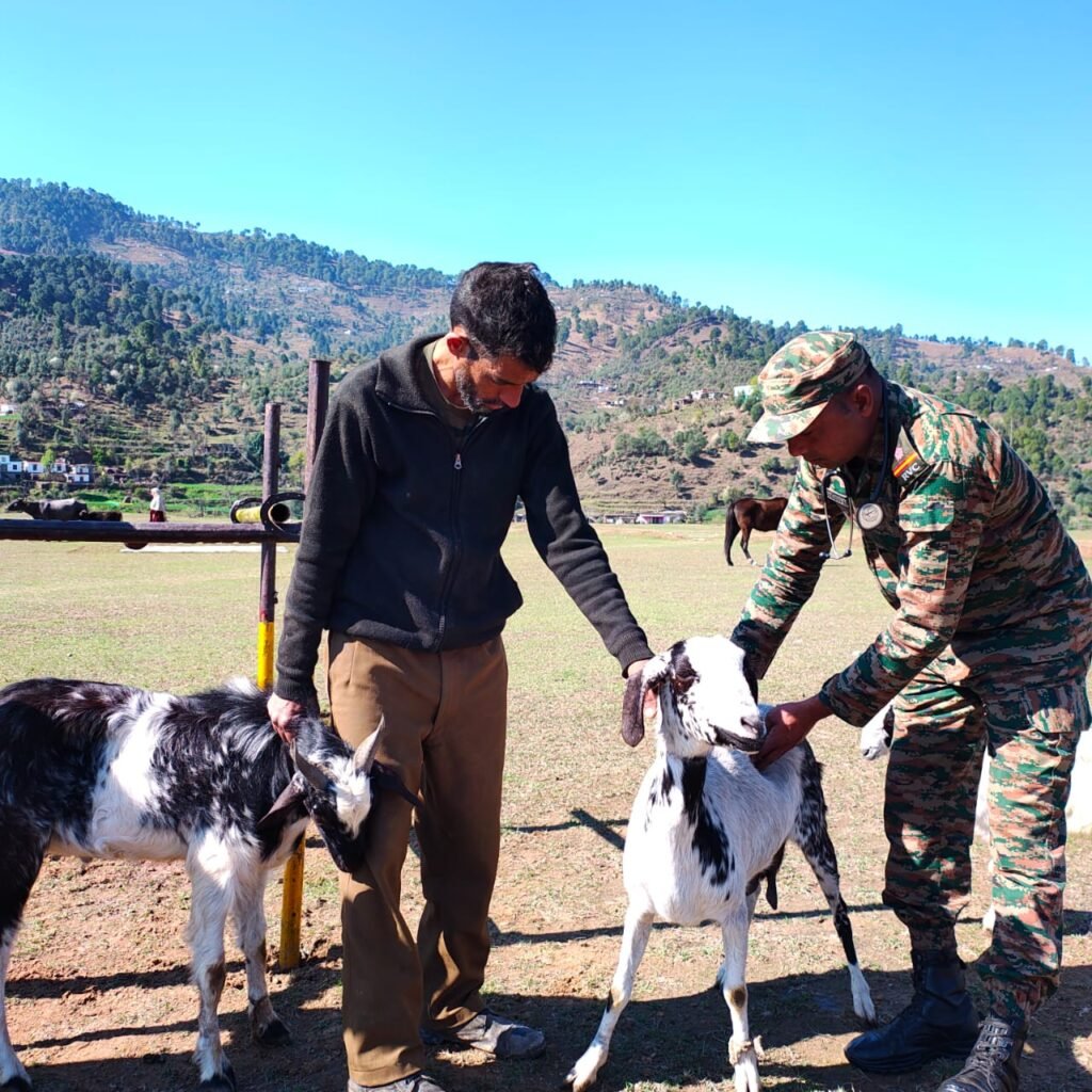 Mendhar:DD, A veterinary aid camp was organised by the Indian Army’s Balnoi Bn at Balnoi Base, where a team of doctors examined numerous livestock and other animals.