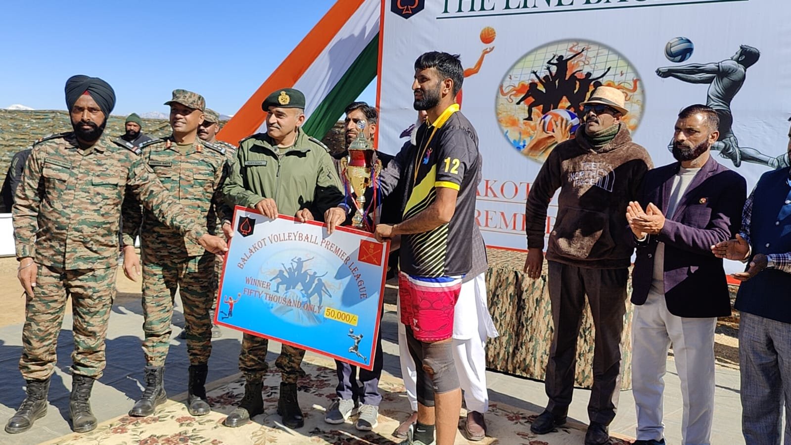 Balakote (Mendhar): The Indian Army organised a vibrant volleyball tournament in the Balakote area of Mendhar, drawing enthusiastic participation from eight teams across the tehsil and transforming the remote border belt into a hub of sporting activity.