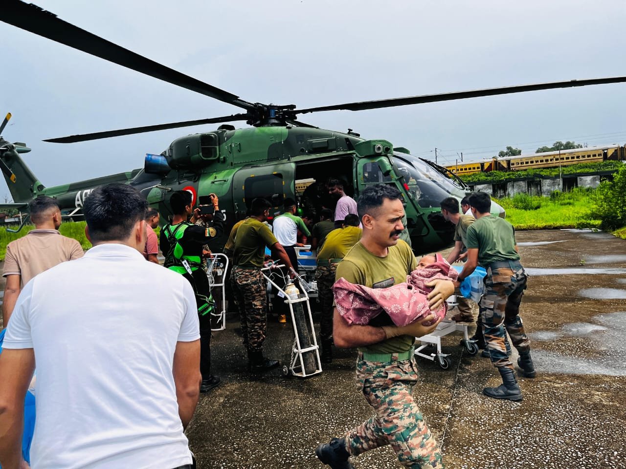 Augmenting the ground efforts, Indian Army helicopters were deployed for aerial evacuation and relief delivery.