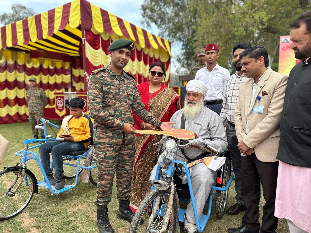 Jammu : DD, Demonstrating its steadfast commitment to community welfare and social responsibility, the Tiger Division of the Indian Army organized a Special Equipment Distribution Camp at Miran Sahib Military Station. The initiative, conducted in collaboration with the Artificial Limbs Manufacturing Corporation of India (ALIMCO), aimed to provide much-needed assistance to senior citizens and specially-abled individuals from the RS Pura border areas.