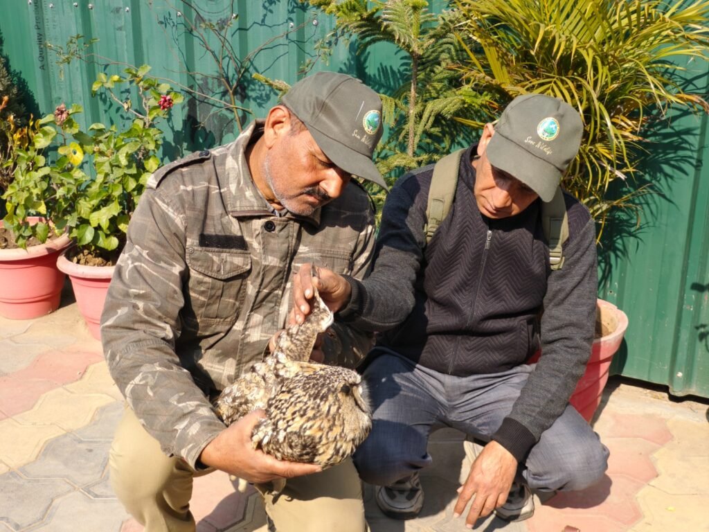 Udhampur :DD,A heartening example of community involvement in wildlife conservation has emerged from the Kaghote village of Ramnagar tehsil in Udhampur district. The Wildlife Department of Jammu and Kashmir’s Udhampur division proved its commitment to wildlife protection by successfully rescuing an injured owl on Sunday. The rescue operation reflected the positive relationship between local residents and the wildlife department, demonstrating collaborative efforts for the betterment of endangered species.