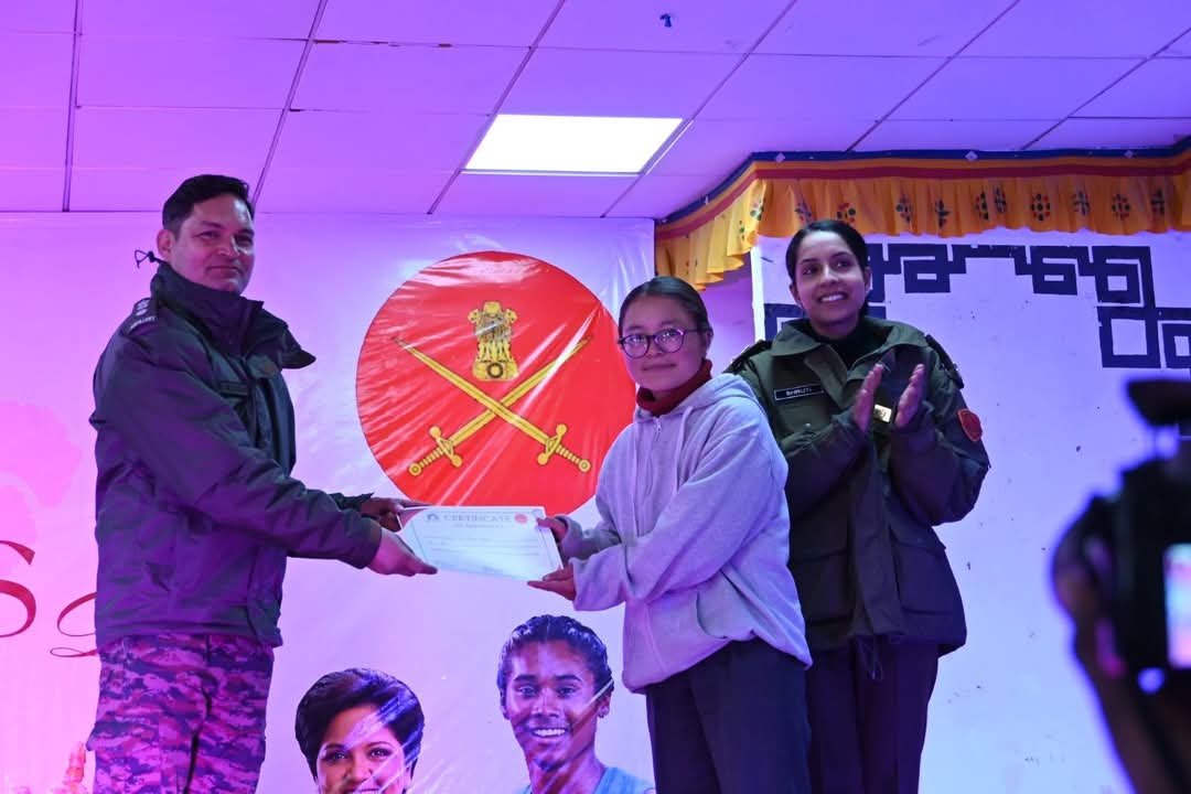 Lt. Colonel Anil Kumar of 129 SATA regiment then felicitated the Chief Guest, the Principal of the college and other guest including Ms. Nilza Wangmo, Nari Shakti Puraskar awardee and founder/owner of Alchi Kitchen and the representatives of Women’s Alliance of Ladakh for their role in women empowerment and development of society in Ladakh.