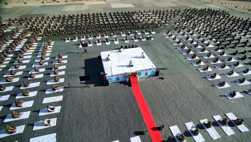 Leh,DD, International Yoga Day was celebrated under the aegis of Fire and Fury Corps at Col Sonam Wangchuk Stadium, Leh aligned to the theme of the year ‘Yoga for One Earth One Health’.