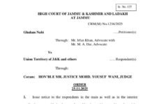 Vikar shah Jammu: DD, The High Court of Jammu & Kashmir and Ladakh has stayed further investigation in FIR No. 0234/2025 registered at Police Station Kishtwar, granting interim protection to the petitioner Ghulam Nabi who had approached the Court seeking quashment of the FIR. Justice Mohd. Yousuf Wani, while issuing notice to the respondents, directed … Continue reading J&K High Court Stays Investigation in Kishtwar FIR; Notice Issued to UT Govt