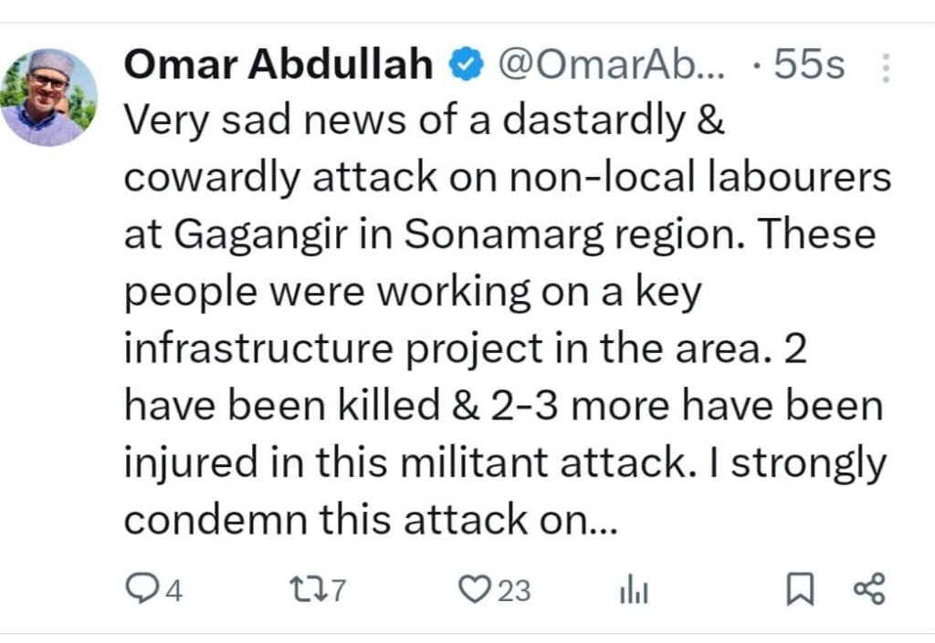 JKPCC President expressed grave concern over the attack by unknown gunmen on non local labourers.