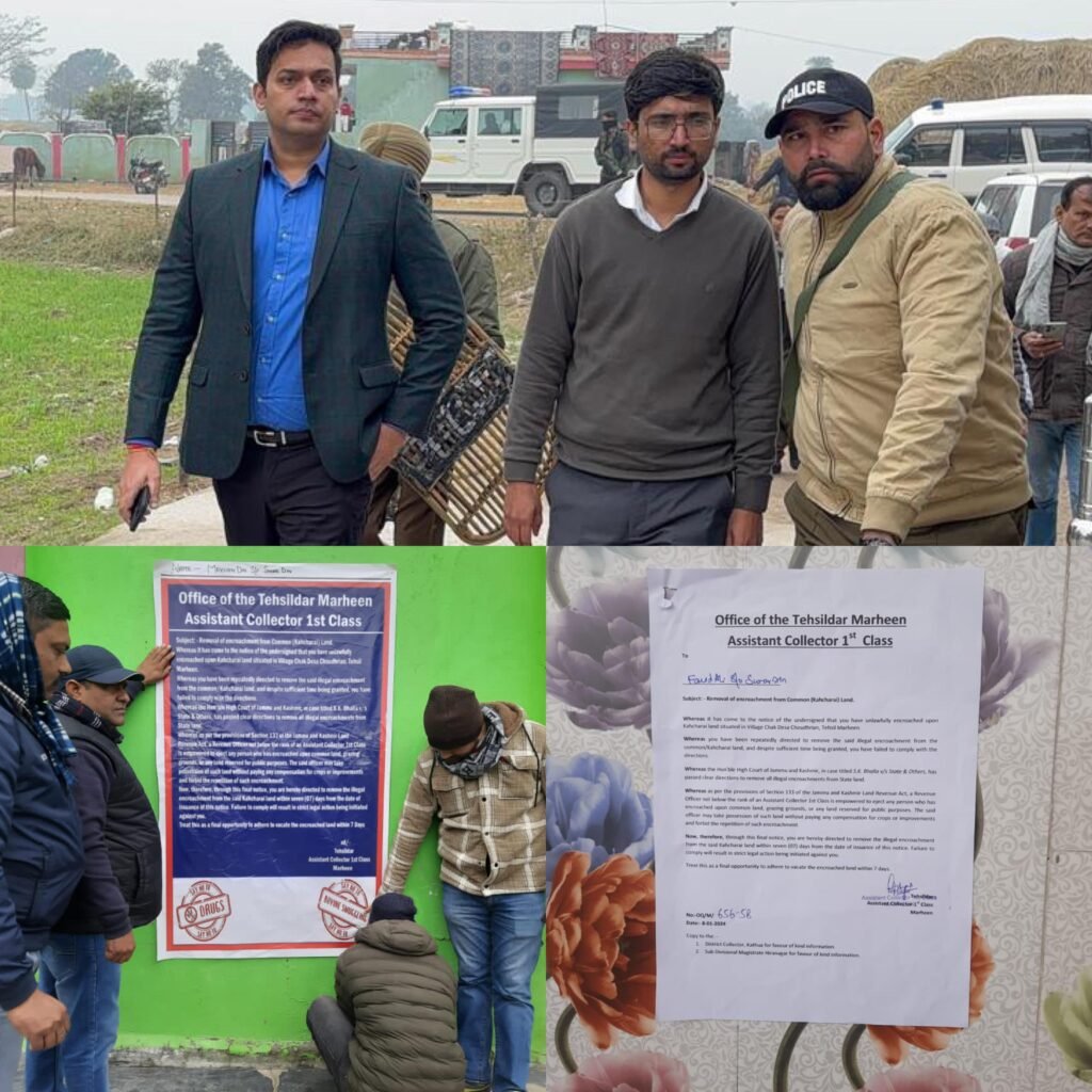 Kathua, TDD ,The District Administration of Kathua has launched a vigorous crackdown on individuals with no verified source of income, specifically targeting those linked to illegal activities, including drug smuggling and bovine trafficking.The administration has issued a notice to encroachers in Panchayat Chak Desa Choudharian, Tehsil Marheen, demanding the immediate vacation of 372 kanals of state land (Kahcharai land).