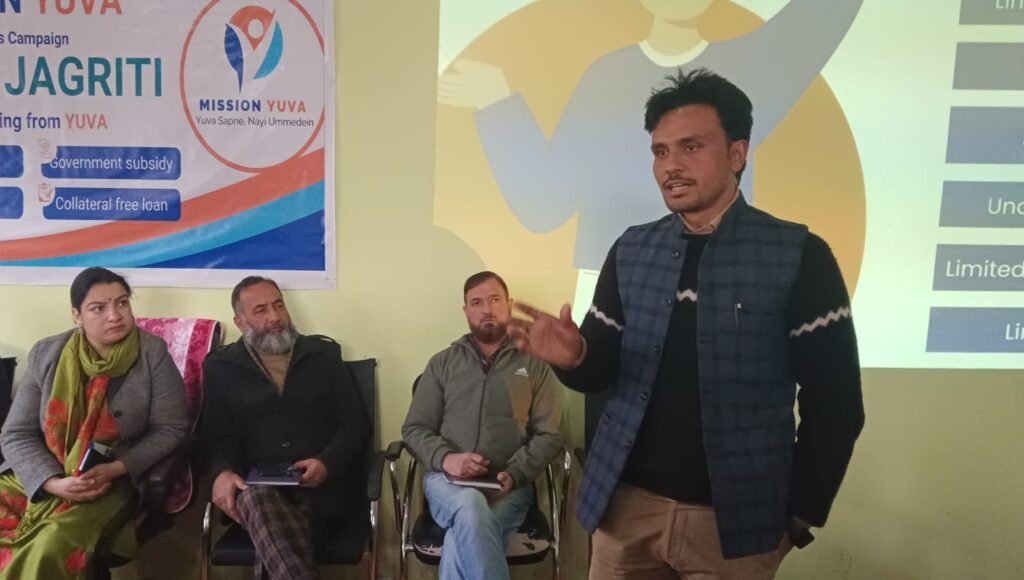The awareness campaign was organized to motivate the young educated towards the entrepreneurship under the Mission Yuva campaign that was launched at Panchayat Level Badrina by Mamta Sudarshan (JKAS), District Employment Exchange, Kishtwar and Assistant Labour Commissioner Kishtwar along with Amjad Hussain Agriculture Chief Officer Kishtwar along with officials and local successful entrepreneur of district Kishtwar.
