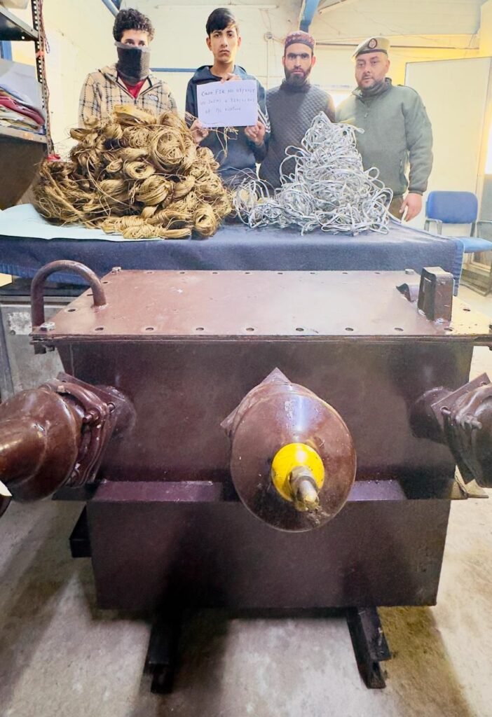 Kishtwar:TDD,In a swift and commendable achievement, District Police Kishtwar solved a transformer theft case within 24 hours, arresting three individuals and recovering the stolen 25 KV electric transformer along with its core and coils.