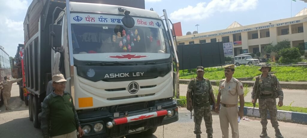 A police team led by Tribhuvan Khajuria SHO Lakhanpur on the directions of SSP Deepika along with Naveen Kumar, DMO Kathua seized four vehicles i.e., tipper bearing ch. no.MAT448037H5B03189 loaded with Crushed Bajri, tipper bearing Ch.no.UE28B/39TTIP loaded with Screened sand, tipper bearing No.PB02CR 9991 loaded with screened Sand and tipper bearing no PB02BU 9807 loaded with screened sand all these vehicles are indulged in illegal mining and transporting mining material to Punjab without valid permission.
