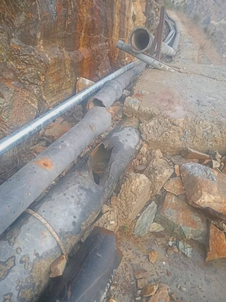 Kishtwar, (DD): A landslide at Dool has severely damaged the main Naigarh Gravity water supply line, leaving Kishtwar town and its adjoining areas facing a water crisis. The disruption, which occurred earlier today, has caused widespread inconvenience to residents who rely on the pipeline for their daily water needs.
