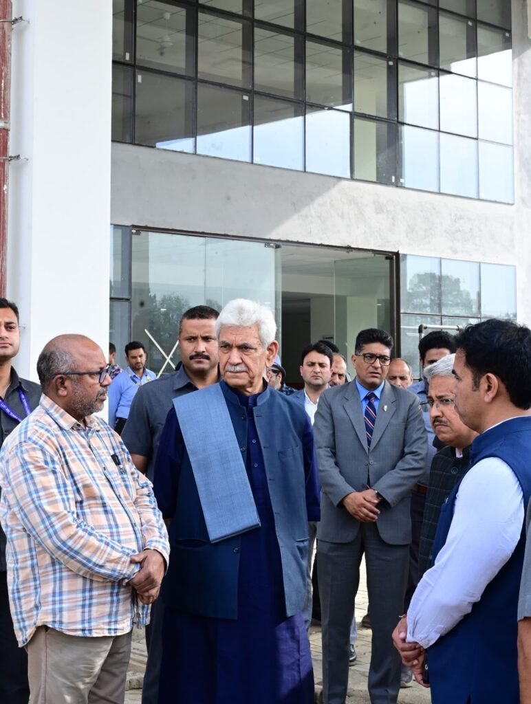 Srinagar, DD: Lieutenant Governor Shri Manoj Sinha today conducted the on-site inspection and reviewed ongoing construction work of the Office and Yatri Niwas of Shri Amarnath ji Shrine Board at Pantha Chowk, Srinagar.The Lieutenant Governor ascertained the progress of the work and emphasised on timely completion of the project.