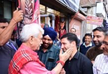 Diplomat Correspondent Srinagar, (DD): Lieutenant Governor Manoj Sinha today visited Balidan Stambh in Srinagar’s iconic Lal Chowk area, where he paid homage to the martyrs and inspected key locations in the city centre. The visit followed his earlier stop at Tulmulla in Ganderbal, where he participated in the annual Kheer Bhawani Mela. The Lieutenant Governor … Continue reading LG Manoj Sinha Pays Tribute at Balidan Stambh at Lal Chowk After Visiting Kheer Bhawani Mela