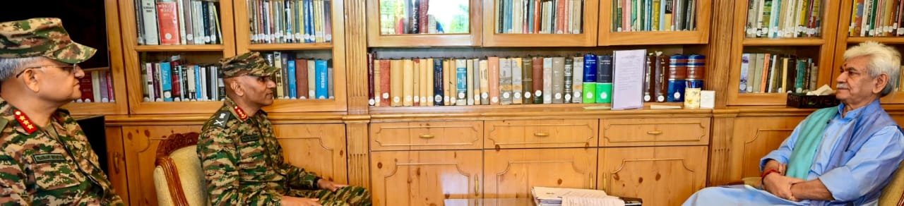Srinagar, DD, Lieutenant General Pratik Sharma, General Officer Commanding-in-Chief (GoC-in-C) Northern Command, called on Lieutenant Governor Shri Manoj Sinha, today and briefed him on latest developments and different aspects pertaining to prevailing security scenario.