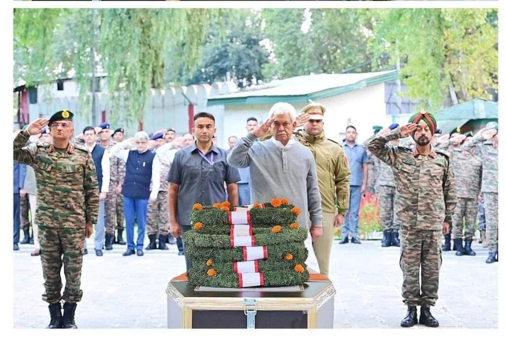 Srinagar,TDD, Lieutenant Governor Manoj Sinha on Wednesday paid tribute to Rifleman Hilal Ahmad Bhat, a Territorial Army soldier who lost his life in the line of duty in Anantnag.