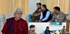 Diplomat Correspondent SRINAGAR: DD, The Lieutenant Governor, Manoj Sinha chaired a high-level review meeting on security scenario in Jammu Kashmir in Raj Bhawan, Srinagar today.He has directed all concerned officials to maintain constant vigil and security and emphasised on seamless coordination amongst the J&K Police, Intelligence and security agencies.DD