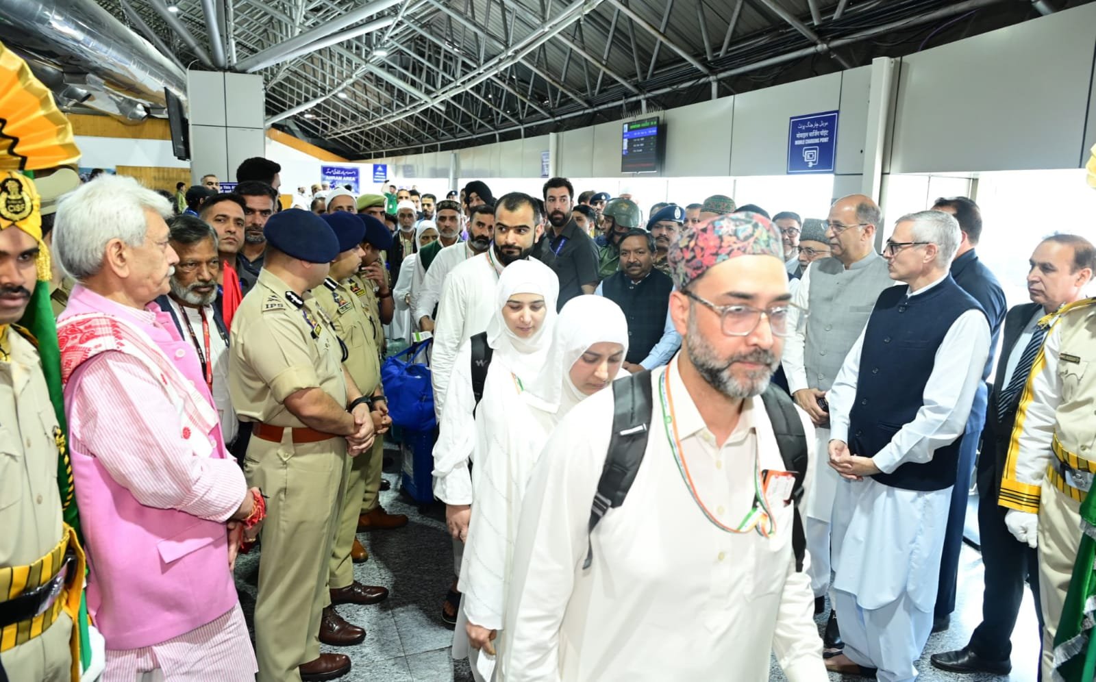 Shri Omar Abdullah, Chief Minister; Shri Dheeraj Gupta, Additional Chief Secretary; Shri Vijay Kumar Bidhuri, Divisional Commissioner Kashmir; Shri Vidhi Kumar Birdi, IGP Kashmir; Shri Akshay Labroo, Deputy Commissioner Budgam and members of J&K Haj Committee, senior officers of Airport Authority, Civil and Police administration were present on the occasion.DD