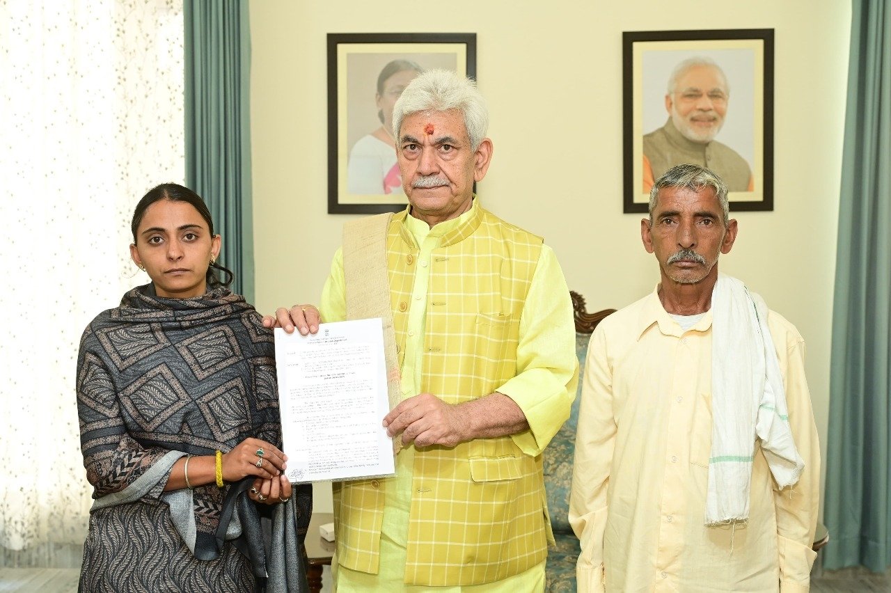 Lieutenant Governor hands over appointment letter to sister of Bus Conductor martyred in Reasi Terror attack