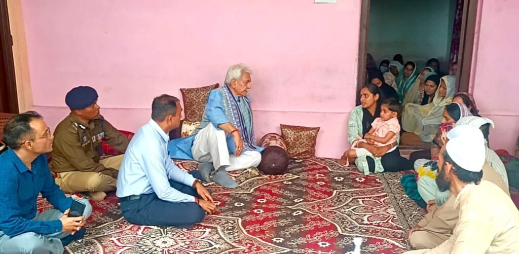 Jammu, DD: Lieutenant Governor Shri Manoj Sinha visited the families of J&K Police Martyrs – SgCT Balvinder Singh Chib, SgCT Jaswant Singh, HC Jagbir Singh, and SgCT Tariq Ahmed, at their native villages in Kana Chak, Londi, Mattu Khour and Chamba Katra.