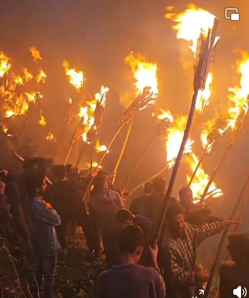 Srinagar, (DD)Nestled in the picturesque hills of South Kashmir’s Anantnag district, the town of Ashmuqam came alive Saturday evening, with a spectacle of light, devotion, and tradition—the “Zool Festival”. This centuries-old celebration, steeped in mysticism and spiritual reverence, draws thousands of devotees and curious visitors who gather to honour the legacy of the revered Sufi saint, Baba Zaina-ud-din Wali, fondly known as Zain Shah Sahib.