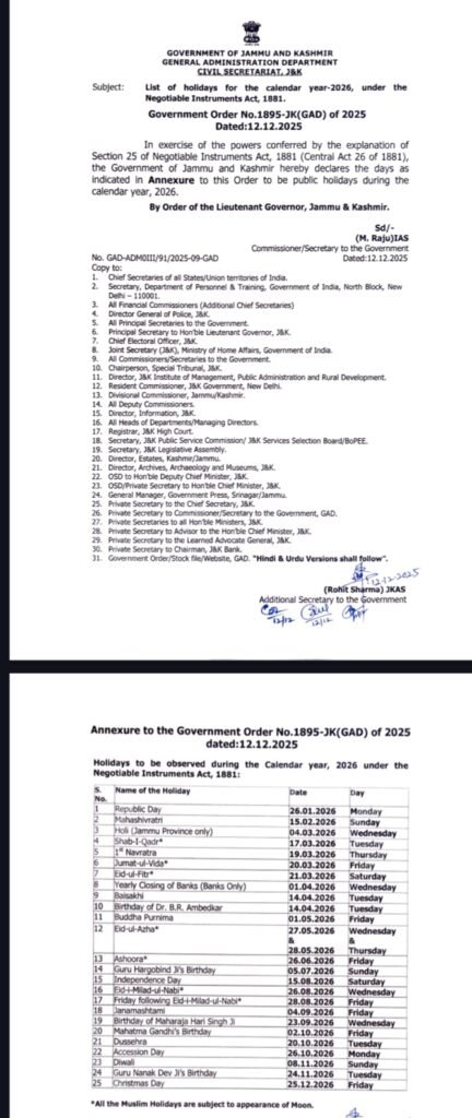 List of holidays for the calendar year-2026, under theNegotiable Instruments Act, 1881. Diplomat Digital 1 month ago Oplus_0