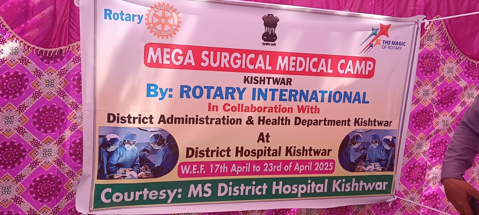 Kishtwar, DD, A week-long Mega Surgical Medical Camp commenced today at District Hospital Kishtwar, organized by Rotary International in collaboration with the District Administration and Health Department Kishtwar. The camp will run from April 17 to April 23, 2025, offering free surgical and medical services to the residents of the district.