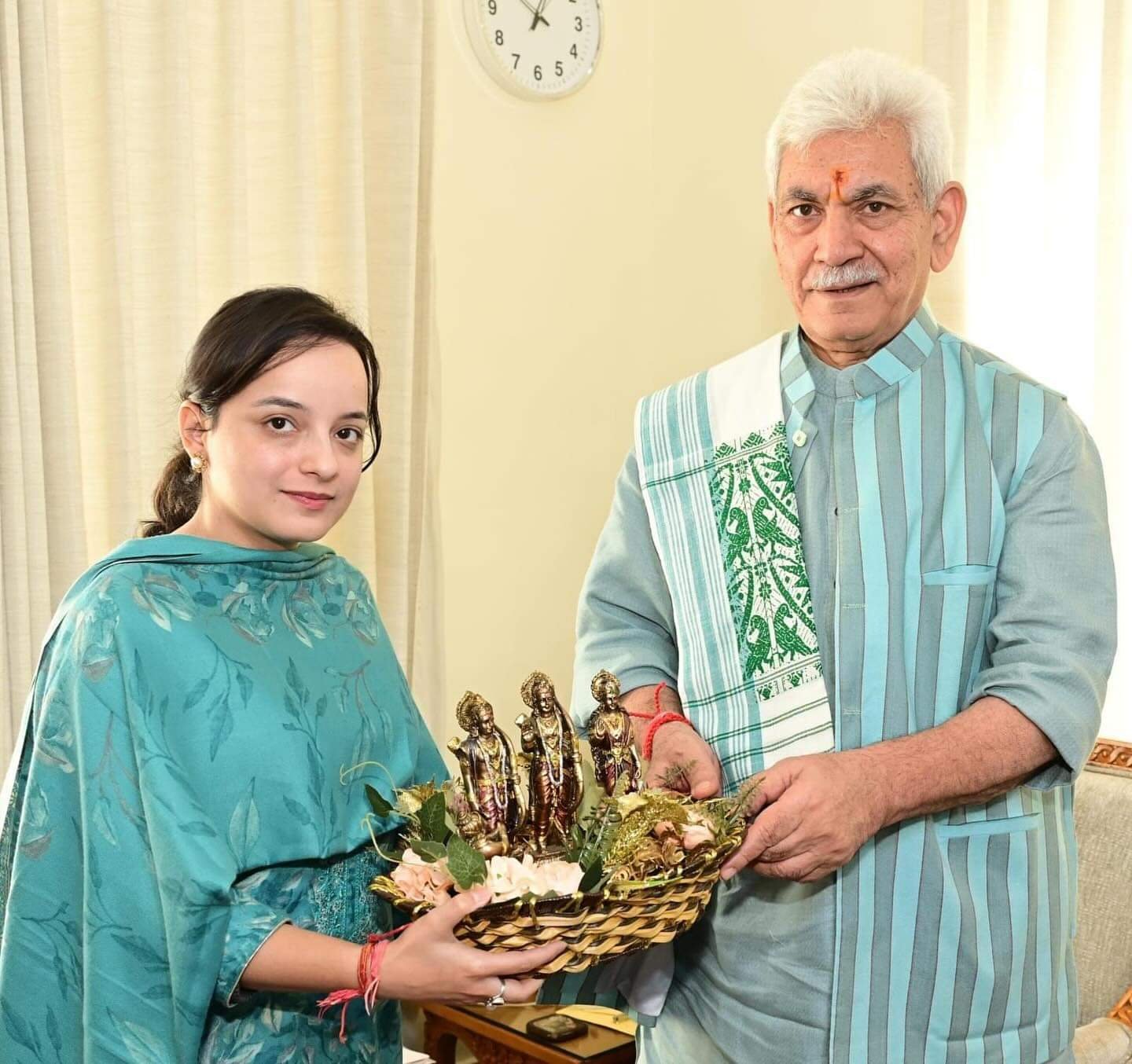 Shagun Parihar extends greetings to the LG Manoj Sinha and apprised him of various public issues. She discusses the various developmental projects and issues of the public of their constituency also with LG and sought guidance and support on key matters.