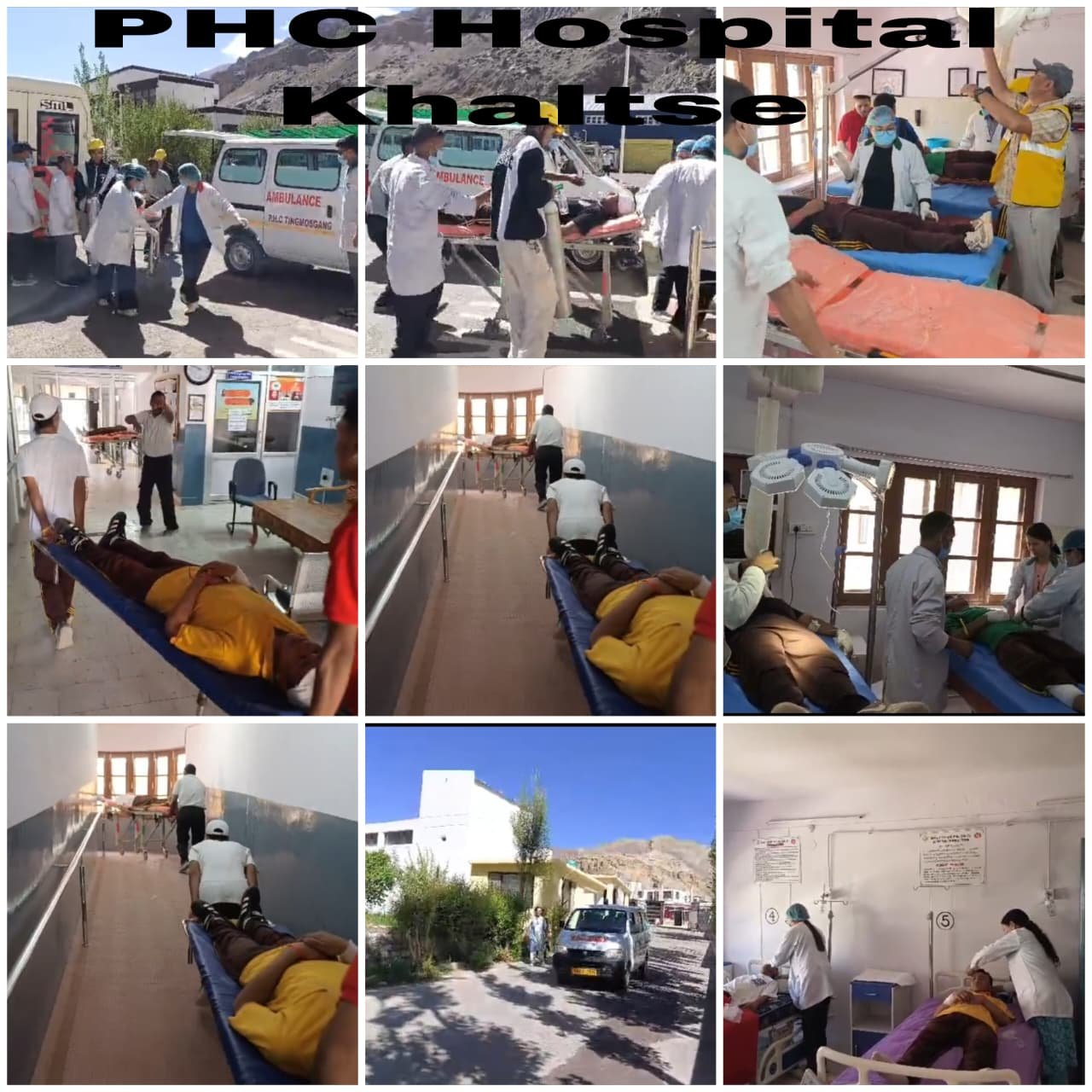 At the staging area, set up at the LDA building near TCP Khaltse, the simulation triggered coordinated rescue operations by officials, local police, and medical teams.