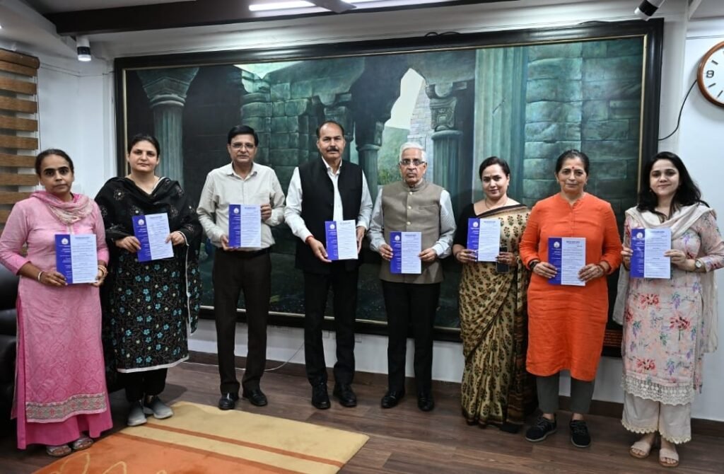 The publication was coordinated by Dr. Shashi Prabha, Convener, Publication Cell. The release event was attended by Prof. J. P. Singh Joorel, Dean Academic Affairs; Dr. Neeraj Sharma, Registrar; Prof. Namrata Sharma; Prof. Komal Nagar; Dr. Shashi Prabha; Dr. Shallu Sehgal; and Dr. Harleen Kour.