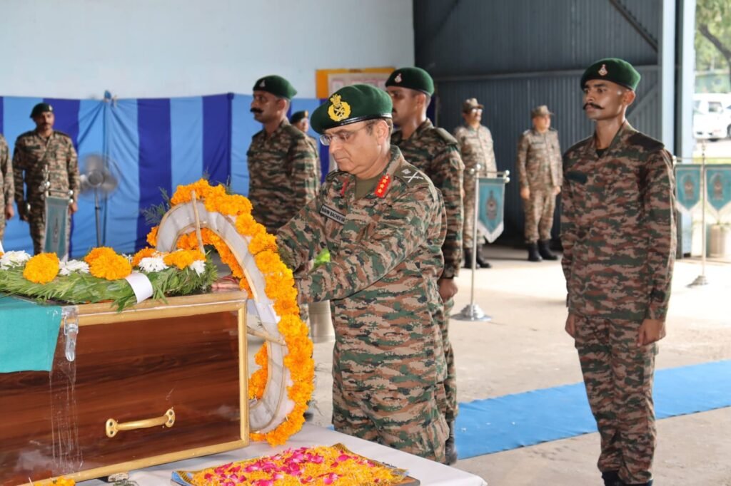 JAMMU :TDD, The Indian Army paid solemn tributes to two brave soldiers who lost their lives during a militant encounter in Kishtwar district, Jammu and Kashmir. A wreath-laying ceremony was held on Saturday at the Technical Air Force Station in Jammu to honor their sacrifice.