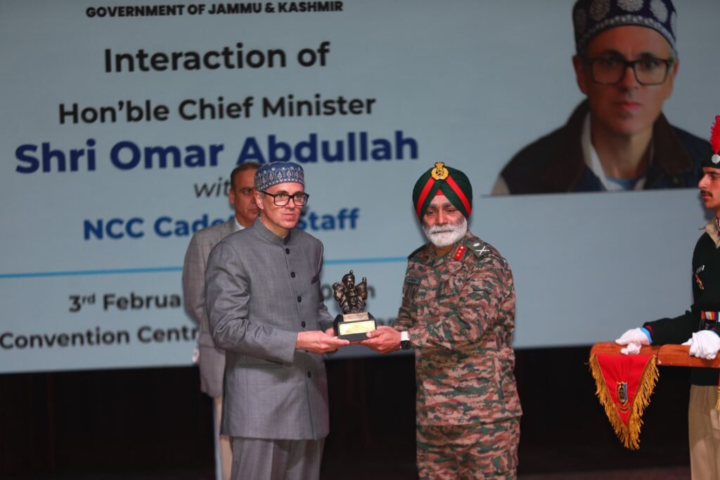 Jammu :DD, The Chief Minister of Jammu and Kashmir, Omar Abdullah, welcomed the NCC cadets of the Jammu, Kashmir, and Ladakh Directorate at the prestigious Convention Centre today. The event was organized to celebrate the cadets’ remarkable achievements at the Republic Day Camp (RDC) 2025 and to acknowledge their dedication and excellence.