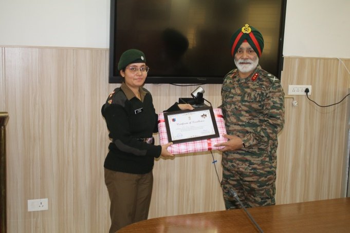 Jammu : TDD,Lt Ira Vermani, ANO from APS Kaluchak who is a subject Matter Expert in Clinical Psychology performed outstandingly in the PRCN Course SW -111 at Officers Training Academy Gwalior. She was awarded the Rolling Trophy and Certificate of Excellence in Leadership & Motivation as well as Certificate of Excellence in Lecturīe on Instructional Practice(IP) . She has demonstrated a *Victorious Will; the DNA of J&K and L Dte leaving a rich legacy. Her commitment is ssen from the fact that she left her 6 years old son at her parents place to pursue this 75 Days course and remained in the flow and in the zone to elicit a convincing proof of the hierarchy in her leadership skills. Lt Ira Vermani and Lt Rukhsana Kousar were part of the Editorial Team of the OTA Gwalior Newsletter and contributed positively in covering all activities holistically capturing the essence of the course. All three ANOs from JK&L Dte, namely Lt Ira Vermani from APS Kaluchak , Lt(Dr) Rukhsana Kousar from GCW Udhampur and Lt Eshrat Ara from GCW MA Road Srinagar Secured A Grade on the course showcasing their dedication,determination and devotion during the course. The Additional Director General ,NCC Dte JK & L, Maj Gen Anupinder Bevli,VSM has felicitated the achievers and appreciated their commitment. Maj Gen Bevli also appreciated the Principals of APS Kaluchak, GCW Udhampur and GCW MA Road Srinagar for selection of ANOs who can lead from the front and be an example for the Youth.TDD
