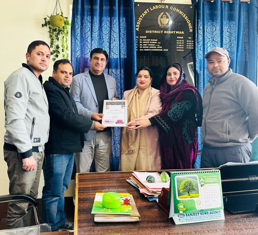 KISHTWAR, DD, The NHM Employees Association Kishtwar felicitated Smt. Mamta Sudershan (JKAS), Assistant Labour Commissioner, Kishtwar, in a ceremony at the District Headquarters, recognizing her dedication, leadership, and contributions to women’s empowerment.