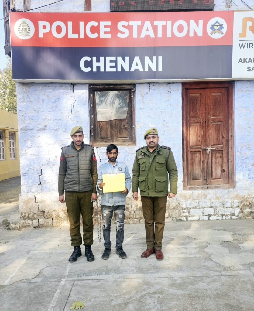 Udhampur ,TDD:- In its continuous war and firm commitment against drug menace, Udhampur Police booked one more notorious Drug Peddler namely Nazir Ahmed @Nijju S/O Mh.Miyan R/O Narsoo Nallah, Chenani, Udhampur under Prevention of Illicit Traffic in Narcotic Drugs and Psychotropic Substances Act (PIT-NDPS) for his repeated involvement in selling and distributing Contraband Narcotics among the populace of Chenani/Udhampur and its adjoining areas.