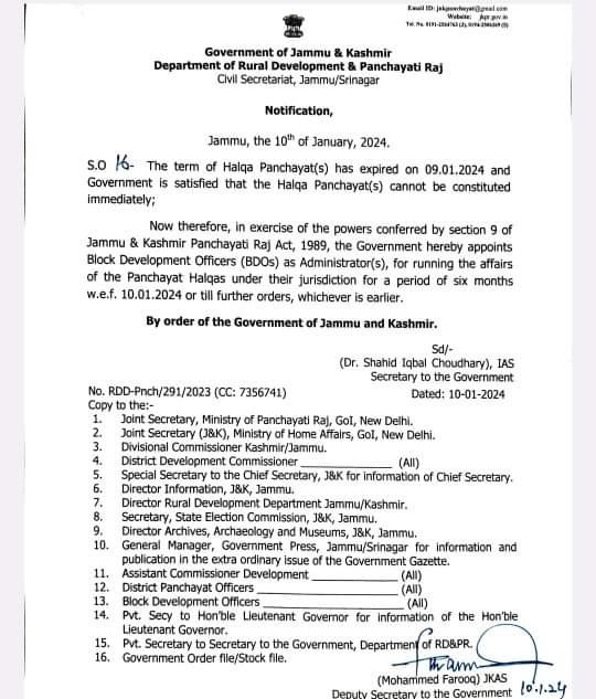 Jammu, TDD: Over a year has passed since the term of Halqa Panchayats in Jammu & Kashmir expired on January 9, 2024. At that time, the government appointed Block Development Officers (BDOs) as interim Administrators to manage Panchayat affairs for six months. However, despite the lapse of this period, there has been no update or progress regarding the reconstitution of the new Panchayats.TDD