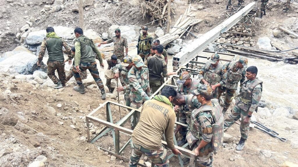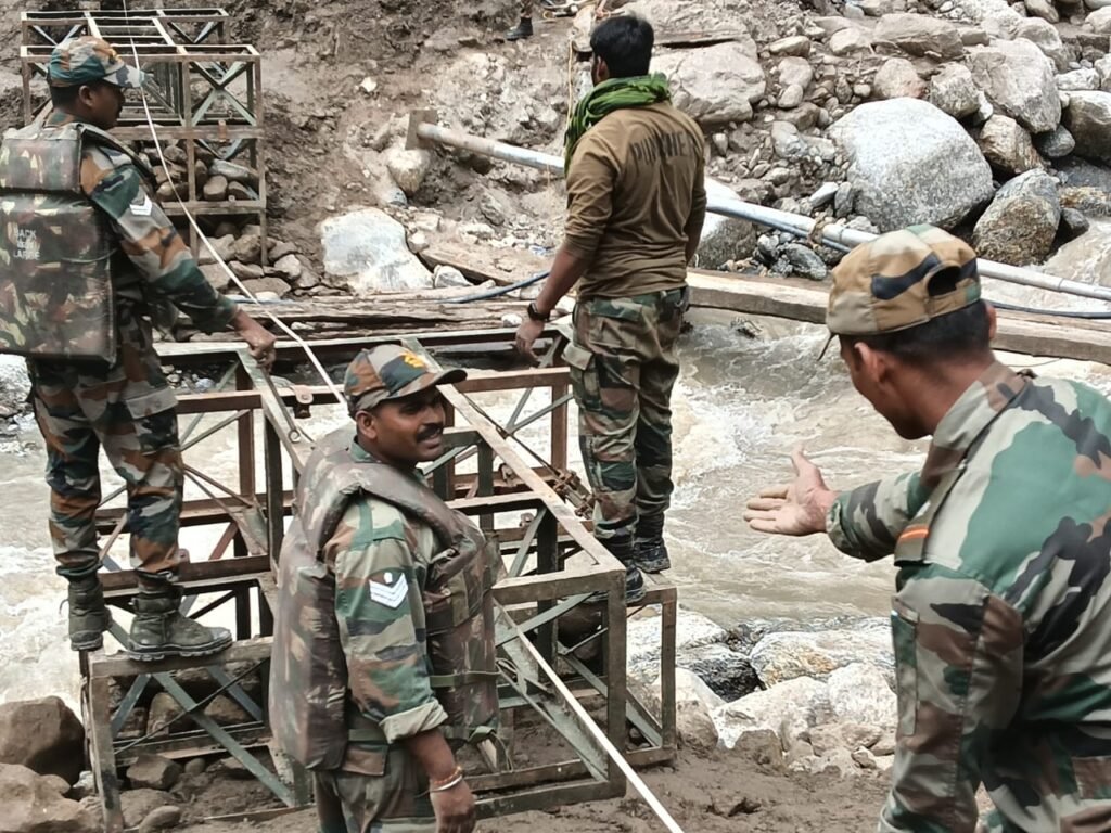 CHISHOTI (Kishtwar),DD: In the ongoing relief and rescue operation at the cloudburst village Chishoti in Padder, Indian Army has started construction of a bridge across the Chishoti Nallah that had washed away in the flash flood, and mudslides.