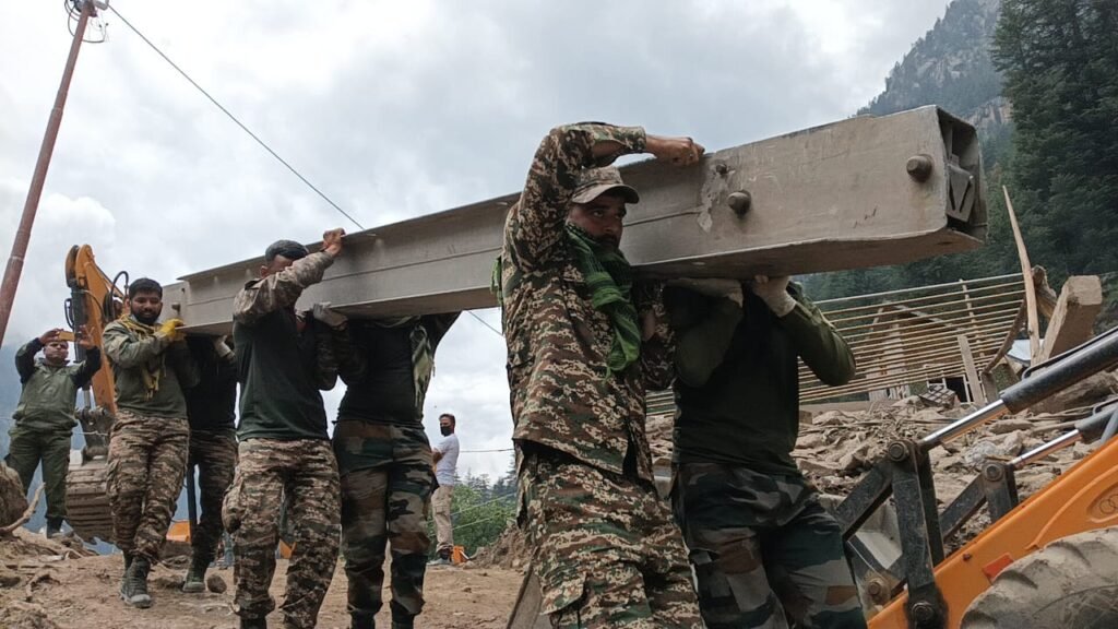 CHISHOTI (Kishtwar),DD: In the ongoing relief and rescue operation at the cloudburst village Chishoti in Padder, Indian Army has started construction of a bridge across the Chishoti Nallah that had washed away in the flash flood, and mudslides.