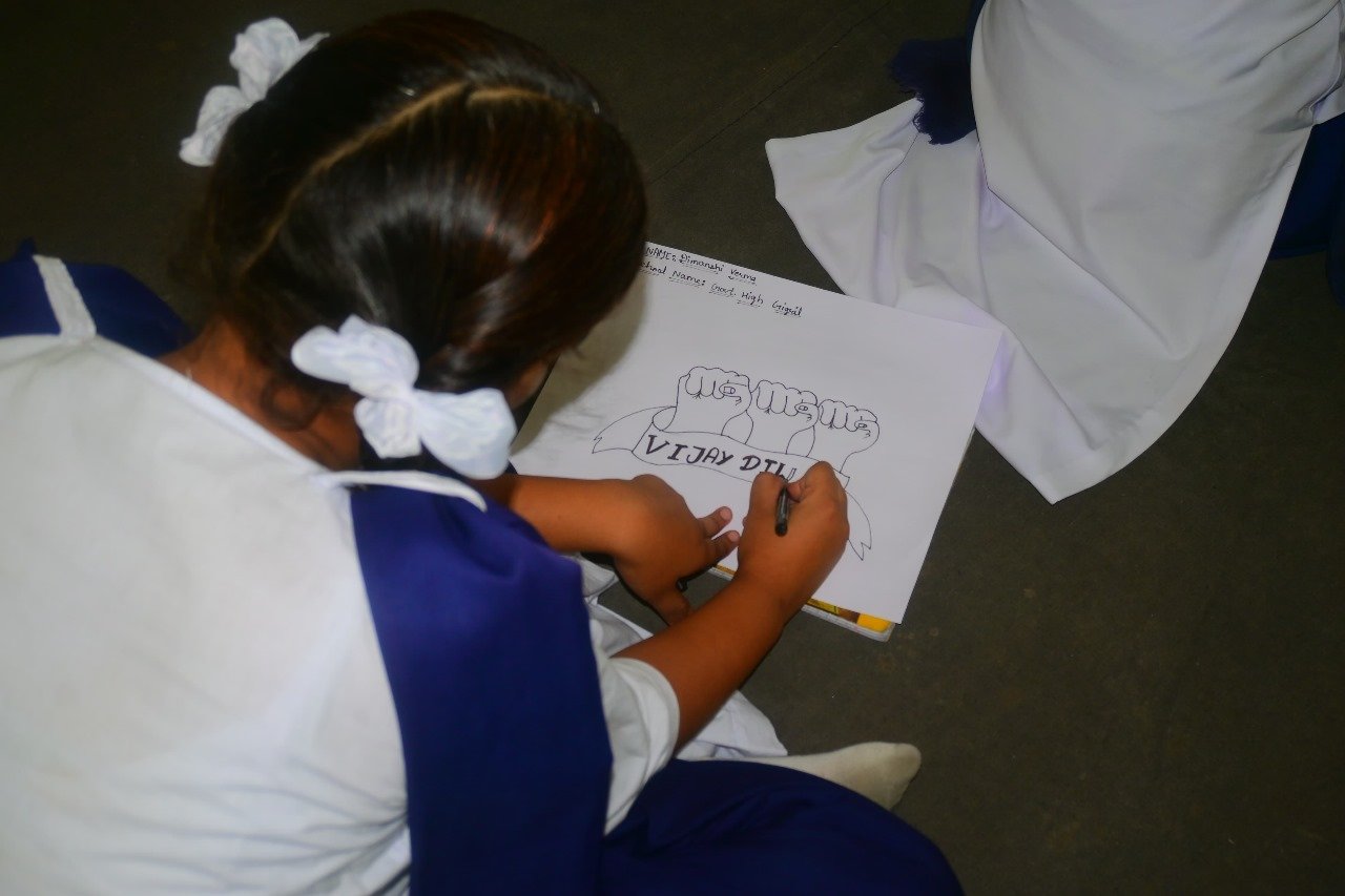 The students participated enthusiastically, using colours and creativity to depict the patriotism and spirit of the Indian Army.