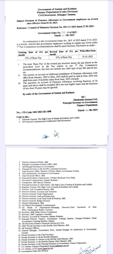 Payment of Dearness Allowance to Government employees on revised rates effective from 01-01-2025 Diplomat Digital 9 months ago